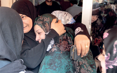 فرحة أقارب المخطــــــــــــــــــــــــــــــــــوفين لدى سماعهم نبأ الإفراج عنهم. أ.ف.ب