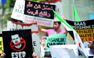 تظاهرة أمام القنصلية السورية في إسطنبول احتجاجاً على مجزرة الحولة. أ.ف.ب
