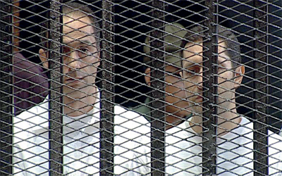 جمال وعلاء مبارك خلال إحدى المحاكمات. إي.بي.إيه