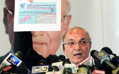 شفيق يهاجم «الإخوان» خلال مؤتمــــــــــــــــــــــــــــــــــره الصحافي أمس. إي.بي.إيه