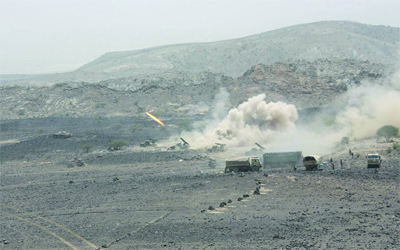 الجيش اليمني يطلق صاروخاً باتجاه مواقع «القاعدة» في أبين. رويترز