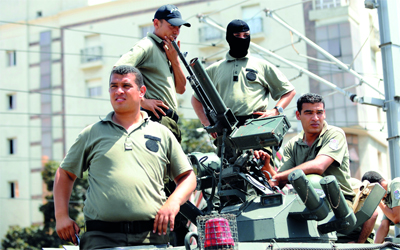 عناصر أمن يراقبون الشارع خلال صلاة الجمعة في تونس. أ.ف.ب