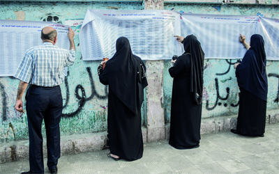 ناخبون يبحثون عن أسمائهم في كشوف الاقتراع في اليوم الثاني والأخير أمس. أ.ف.ب