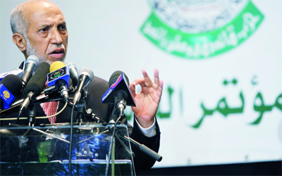 عبدالعزيز بلخادم متحدثاً عقب اجتماع لجنة جبهة التحرير. رويترز