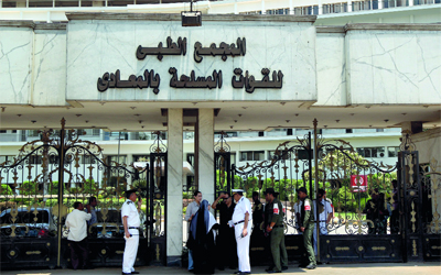 فمستشفى المعادي العسكري أو «الحصن» العسكري الطبي القابع في بداية جنوب القاهرة مباشرة على كورنيش النيل لا يحمل هذا الاسم الشائع، والاسم الأساسي له هو المجمع الطبي للقوات المسلحة بالمعادي، وقد سمي بهذا الاسم لأنه يضم بداخله أكثر من مستشفى وليس مستشفى واحداً، فبداخل تلك الأسوار الحصينة للمجمع الطبي يقبع المستشفى الأساسي العام المطل مباشرة على كورنيش النيل بأدواره الستة، يضم الدور الأول المغسلة المختصة بتغسيل الجثث، وثلاجة المستشفى (المشرحة) وما يعرف بحملة العربيات وهي أشبه بجراج يحوي السيارات الخاصة بالأطباء الضباط وسيارات الإسعاف المختلفة، وكذلك الجزء الخاص بالعلاج الطبيعي، وأخيرا المطبخ والمهمات. وفي الدور الثاني يوجد المعمل الخاص بالحصول على عينات الدم من المرضى وتحليلها وبنك الدم ونقل الدم، وفي الدور الثالث يقع قسم الأشعة وقسم باطنة قلب وقسطرة القلب، وقد أعلنت وسائل الإعلام أنه تم تجهيز جناح خاص للرئيس السابق في هذا الدور. وفي الدور الرابع يقع قسم المسالك البولية وجراحة الأطفال والجراحة العامة وجراحة العظام، وفي الدور الخامس قسم النساء، والأنف والأذن. وفي الدور السادس قسم المخ والأعصاب، وفي الدور السابع يوجد قسم الأوعية الدموية، وبخلاف المستشفى العام يوجد أيضاً مبنى الكبد والكلى ومبنى الأورام ومبنى النفسية والعصبية. وللمستشفى أبواب خمسة: الأول يخص رتبة لواءات القوات المسلحة، والثاني يخصص للمرضى، أما البوابة الثالثة فتخصص للدارسين في مدرسة التمريض، والرابعة خاصة بنزلاء مبنى الكلى والكبد، والبوابة الخامسة هي بوابة زوار عادية وجانبية. وكان من أشهر نزلاء المجمع الرئيس الراحل أنور السادات الذي وصل إليه قتيلاً بعد أن تعرض للاغتيال في احتفالات أكتوبر على المنصة الرئيسة بطريق النصر، وكذلك شاه إيران الذي كان محتجزاً بالدور السادس في جناح خاص به، واللواء الراحل محمد نجيب أحد قادة ثورة 23 يوليو، وكذلك رقية السادات، وأمين عفيفي زوج إحدى بنات السادات، وكوكب الشرق أم كلثوم، والمخرج يوسف شاهين.