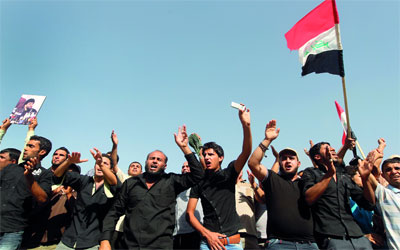 تظاهرة في بغداد ضد إغلاق مكاتب قناة «البغدادية». أ.ف.ب