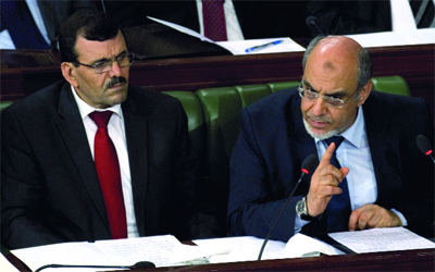 وجاء كلام الجبالي خلال جلسة «استثنائية» للمجلس الوطني التأسيسي لمساءلته حول تسليم المحمودي آخر رئيس وزراء في عهد معمر القذافي لليبيا، رغم رفض رئيس تونس منصف المرزوقي، توقيع «أمر» قانوني بتسليمه. وقال الجبالي ان «المؤسسات الأمنية والعسكرية هي الموكول إليها تقدير سرعة التسليم»، وأن «توقيع أمر التسليم هو من مشمولات (صلاحيات) رئيس الحكومة (وليس رئيس الجمهورية)، حسب القانون المؤقت لتنظيم السلطات العمومية».