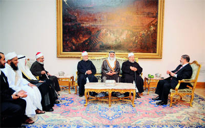 مرسي خلال لقائه عدداً من علماء الدين المسلمين. أ.ف.ب