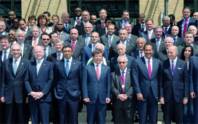 عبدالله بن زايد في لقطة تذكارية مع عدد من المشاركين في المؤتمر الثالث لأصدقاء سورية. وام