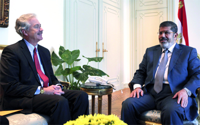 مرسي خلال استقباله ويليام بيرنز. رويترز