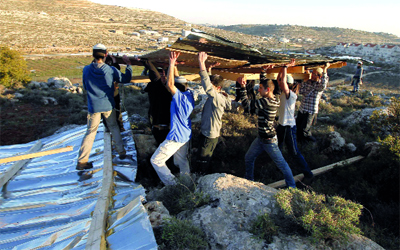 مستوطنون يبنون في بؤرة عشوائية. رويترز