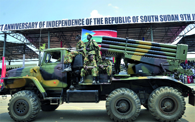 جانب من عرض عسكري في جوبا في ذكرى انفصال جنوب السودان. أ.ب