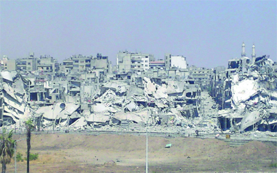 صورة بثتها شبكة شام تظهر الدمار في حي جورة الشياح بمدينة حمص. رويترز