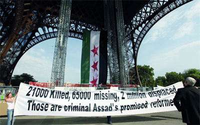 وقال الناشط ابراهيم وتي: «برج إيفل هو رمز فرنسا. جئنا الى هذا المكان الذي تؤمّه اعداد كبيرة من السائحين، حتى نلفت نظر العالم الى ما يجري في سورية».