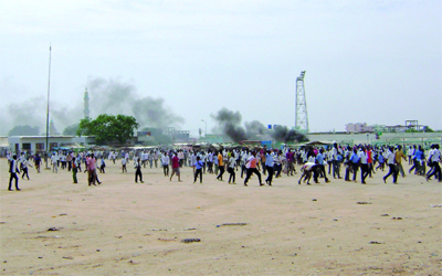 وأبلغ شاهد عيان «فرانس برس» ان الشرطة اطلقت الغاز المسيل للدموع، كما رشق المتظاهرون مباني حكومية بالحجارة واحرقوا الإطارات المستعملة في الطرق الرئيسة، وردد المتظاهرون «الشعب يريد اسقاط النظام».