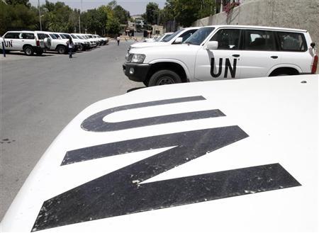سيارات تابعة لمراقبي الامم المتحدة في دمشق - رويترز