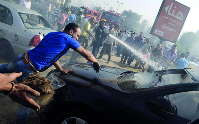 وكان مجهولون قد حاولوا، أمس، إضرام النيران في برجي نايل سيتي، اللذين يملكهما رجل الأعمال نجيب ساويرس، ويقعان بجوار مبنى التلفزيون على كورنيش نيل القاهرة، حيث رشقوا الأبراج بعشرات من زجاجات المولوتوف الحارقة.