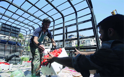 عنصر من الجيش الحر يوزع المواد الغذائية على زملائه في حلب. رويترز