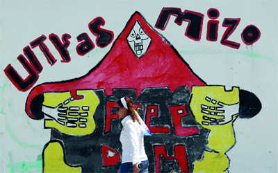 فتاة تسير بجوار غرافيتي لشباب «الألتراس» في أحد شوارع الإسكندرية. رويترز