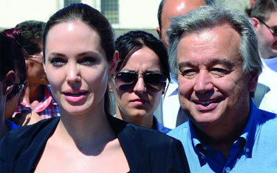 زارت النجمة السينمائية الأميركية والمبعوثة الخاصة للأمم المتحدة، انجلينا جولي، أكبر مخيمات اللاجئين السوريين على الحدود التركية السورية، حيث أبدت «اعجابها بسخاء» الحكومة التركية مع اللاجئين السوريين. وتفقدت جولي برفقة رئيس مفوضية الامم المتحدة لشؤون اللاجئين، انطونيو غاتيريس، نحو 12 ألف لاجئ في مخيم انكوبينار في مدينة كيليس الواقعة في جنوب شرق تركيا عند الحدود مع سورية.