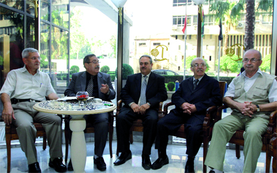 مجموعة من معارضة الداخل قبل اجتماعهم مع الإبراهيمي في دمشق. أ.ف.ب