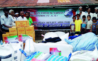 وأشار إلى أن المساعدات شملت طروداً غذائية تحتوي على المواد الغذائية الرئيسة والأدوية الطبية ومسلتزمات النظافة الشخصية، إضافة إلى شراء الملابس من السوق المحلية وتوزيعها على سكان الإقليم، للتخفيف من آلامهم ومن الظلم، والاضطهاد الذي يتعرضون له. وأضاف أن عمليات التوزيع تركزت على المناطق التي تعاني ظروفاً غاية في الصعوبة، والتي تعتبر من المناطق المنكوبة وبحاجة إلى المساعدة، حيث تحرص المؤسسة من خلال هذه الإغاثة الطارئة إلى الوصول مباشرة للمتضررين من سكان المناطق المنكوبة وتقديم الدعم والمعونة لهم. وأشار إلى أن مؤسسة خليفة بن زايد آل نهيان للأعمال الإنسانية كانت من أولى المؤسسات الإنسانية التي تضامنت مع مأساة الروهينغا في أراكان.