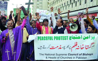 تظاهرات لمسلمين ومسيحيين في باكستان ضد الفيلم والرسوم المسيئة. إي.بي.إيه