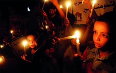 أطفال غزة يضيئون الشموع نصرة لأطفال سورية. أ.ب