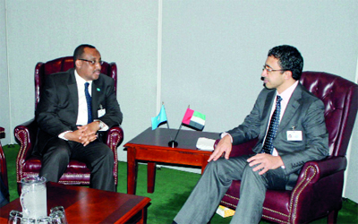 عبدالله بن زايد خلال لقائه رئيس وزراء الصومال. وام