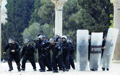 وقال مصور «فرانس برس»، ان قوات من الشرطة وقوات خاصة من القناصة دخلت الى باحة الأقصى، مؤكدا ان الشرطة استخدمت الهراوات والقنابل الصوتية لتفريق المتظاهرين.