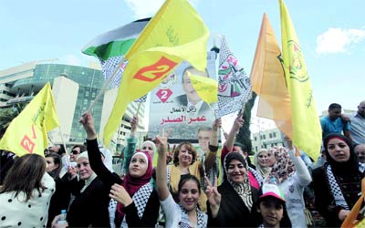 مسيرة انتخابية مؤيدة لـ«فتح» مع انطلاق الدعاية في الضفة. أ.ف.ب