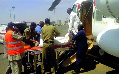 وقال شهود عيان إن «طائرة هليكوبتر حملت الجرحى من منطقة الحادث» التي تبعد نحو 70 كلم غرب الخرطوم. وجبل اولياء على بعد ساعة بالسيارة من وسط العاصمة الخرطوم.