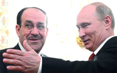 المالكي خلال لقائه الرئيس الروسي. إي.بي.إيه