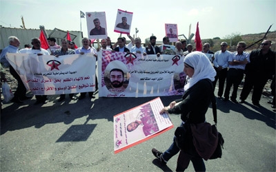 مسيرة قرب رام الله تطالب بإطلاق الأسرى في سجون الاحتلال. أ.ف.ب