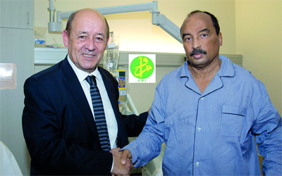 وحسب وكالة الأنباء الموريتانية الرسمية التي نشرت الصور، فإن الرئيس استقبل، أول من أمس، بالمستشفى العسكري وزير الدفاع الفرنسي جان إيف لدريان.