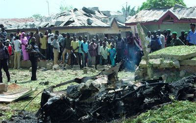 نيجيريون في موقع التفجير الذي استهدف كنيسة. أ.ف.ب