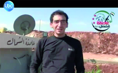 ويظهر الشريط عيتاني واقفا أمام منزل كتبت على جدرانه عبارة «لواء عاصفة الشمال».