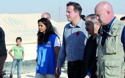 كاميرون خلال زيارته مخيم الزعتري للاجئين في الأردن. رويترز
