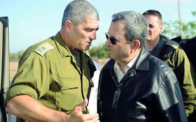 باراك يهدد بزيادة التصعيد خلال زيارته قاعدة للجيش قرب غزة. أ.ف.ب