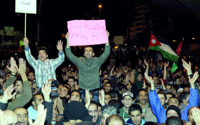 يشهد الأردن منذ الليلة قبل الماضية، احتجاجات واعمال شغب شملت اعتداءات على مباني ومؤسسات حكومية ومراكز امنية، واوقعت اصابات، بعد قرار الحكومة رفع اسعار المحروقات في بلد قارب عجز موازنته خمسة مليارات دولار، فيما حذرت الحركة الاسلامية المعارضة من «عصيان مدني» في البلاد، بعد قرار الحكومة رفع اسعار المحروقات، وأعلنت مديرية الأمن العام أن محتجين حاولوا اقتحام مباني المحافظات في مدن الكرك والطفيلة ومعان جنوب البلاد، غير أن أجهزة الأمن تصدت لهم وأبعدتهم.