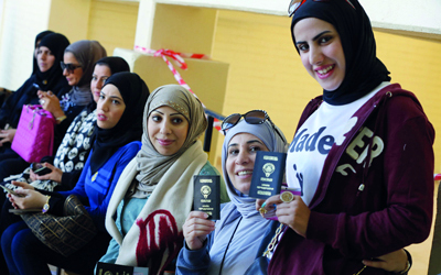 كويتيات ينتظرن دورهن في التصويت أمس. رويترز