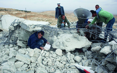 هدمت القوات الإسرائيلية، صباح أمس، مسجداً أقيم قرب إحدى المستوطنات جنوب الضفة الغربية. وقال مسؤول اللجنة الشعبية لمقاومة الجدار والاستيطان في الخليل، راتب الجبور، أن قوات إسرائيلية دمرت بوساطة الجرافات مسجد قرية المفقرة، شرق يطا، جنوب الخليل. وذكر أن المسجد يقع بالقرب من مستوطنة «أفيجال» الإسرائيلية وأعيد تشييده قبل نحو عام، بمساحة ما يقرب من 120 مترا مربعاً. وأشار إلى أنه سبق أن تم هدم المسجد، وأعيد بناؤه بالباطون على نفقة سكان المنطقة.