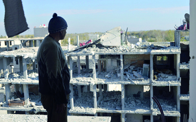 رجل ينظر بحسرة إلى آثار الدمار جراء قصف القوات النظامية بلدة جسرين في الغوطة الشرقية. رويترز