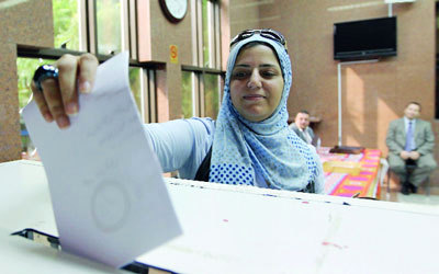 مصرية تدلي بصوتها بالقنصلية المصرية في دبي. إي.بي.إيه