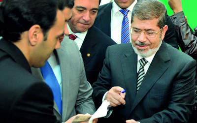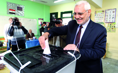 وأدلى الرئيس محمد مرسي بصوته في مكتب تصويت في ضاحية مصر الجديدة شرق القاهرة، من دون أن يدلي بأي تصريح. وعرضت لقطات تلفزيونية لمرسي وهو يدلي بصوته خلف حاجز قبل أن يغمس أصبعه في الحبر الفوسفوري، وهو إجراء يهدف إلى الحيلولة دون إدلاء الناخبين بأصواتهم مرة أخرى.
