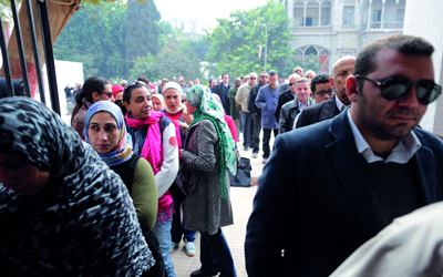 وعند مدرسة جابر الصباح الثانوية في المقطم غير بعيد من مقر «الإخوان المسلمين»، اصطف عشرات الناخبين ينتظرون دورهم حتى قبل بدء الاقتراع.