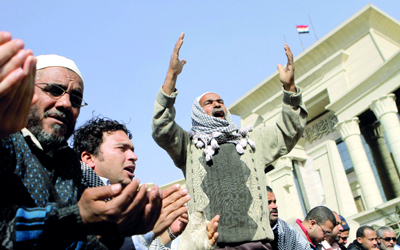 مؤيدون للرئيس المصري خلال اعتصامهم أمام المحكمة الدستورية. أ.ب