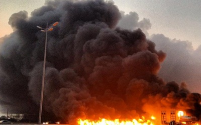 تسبب حادث تصادم وقع، اليوم، على طريق الجبيل الظهران شرق السعودية، باشتعال صهريج محمل بـ "الديزل"، ومقتل شخص وإصابة آخر بجروح بسيطة.