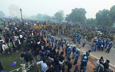 أصيب عشرات المتظاهرين وعناصر الشرطة الهندية بجروح خلال تظاهرات أمس في العاصمة الهندية نيودلهي، شارك فيها آلاف الأشخاص، مطالبين بالعدالة لطالبة جامعية تعرضت للاغتصاب الوحشي على متن حافلة في العاصمة، حيث استخدمت الشرطة خراطيم المياه والغازات المسيلة للدموع والعصي لتفريق المتظاهرين.