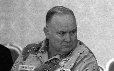 وبين اغسطس 1990 ومارس 1991 احتلت قامته الضخمة (طوله 195 سم ووزنه 120 كلغ) شاشات التلفزة في العالم اجمع حين قاد جيوش التحالف الدولي التي نجحت في تحرير الكويت من قوات الرئيس العراقي السابق صدام حسين، في حرب كانت الاولى التي يتابعها المشاهدون حول العالم على الهواء مباشرة.